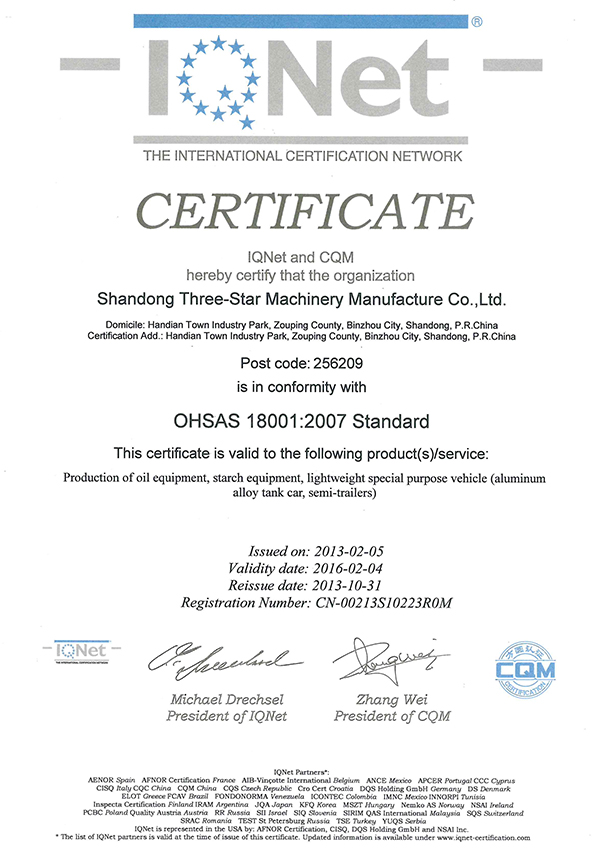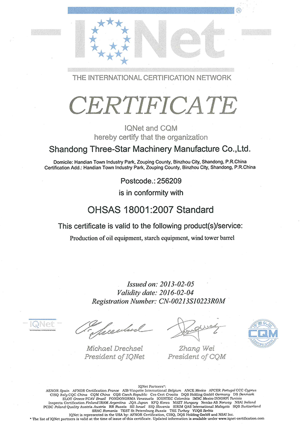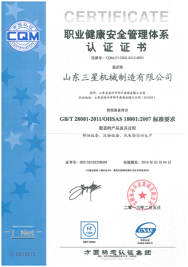 職業(yè)健康安全管理體系認(rèn)證證書