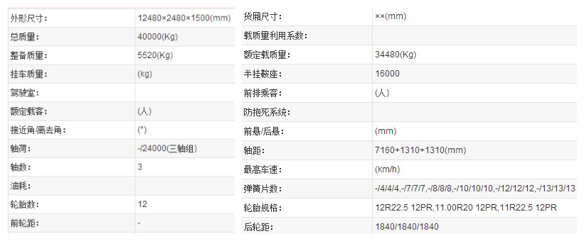 | 后輪距(mm) | 2040/2040/2040 | 軸荷(kg) | -/8000/8000/8000 |